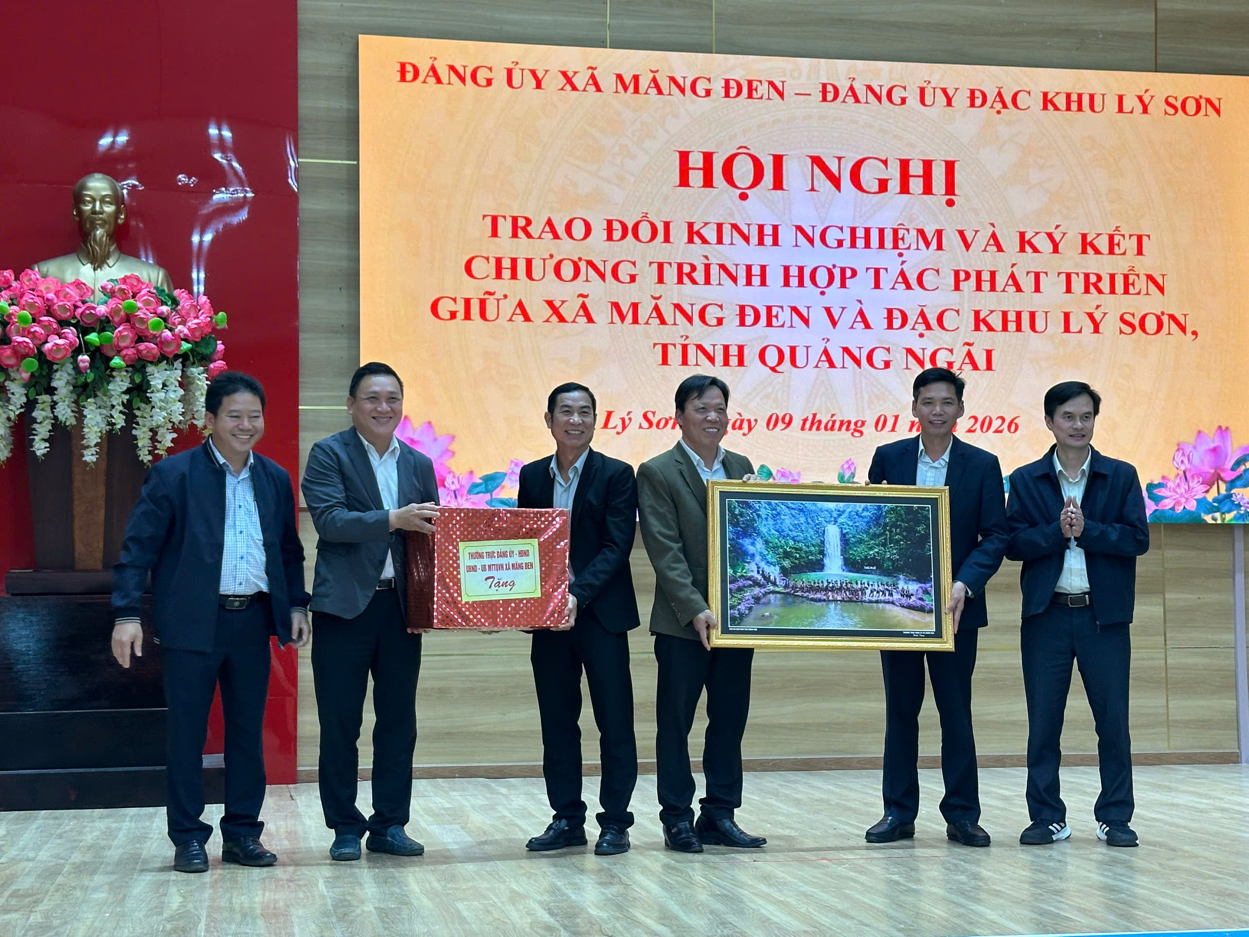 Nhằm tăng cường mối quan hệ hợp tác, trao đổi kinh nghiệm trong công tác quản lý nhà nước và phát huy tiềm năng, thế mạnh của mỗi địa phương trong phát triển kinh tế – xã hội, đặc biệt là lĩnh vực du lịch, dịch vụ và bảo tồn giá trị văn hóa, ngày 09/01/2026, Đặc khu Lý Sơn đã tổ chức Lễ ký kết chương trình hợp tác với xã Măng Đen.