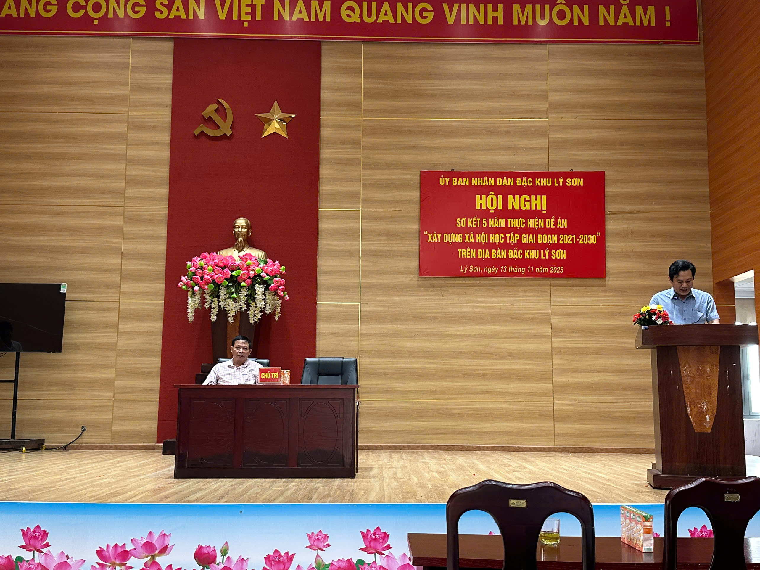 UBND ĐẶC KHU LÝ SƠN TỔ CHỨC HỘI NGHỊ SƠ KẾT 5 NĂM THỰC HIỆN ĐỀ ÁN “XÂY DỰNG XÃ HỘI HỌC TẬP GIAI ĐOẠN 2021–2030”